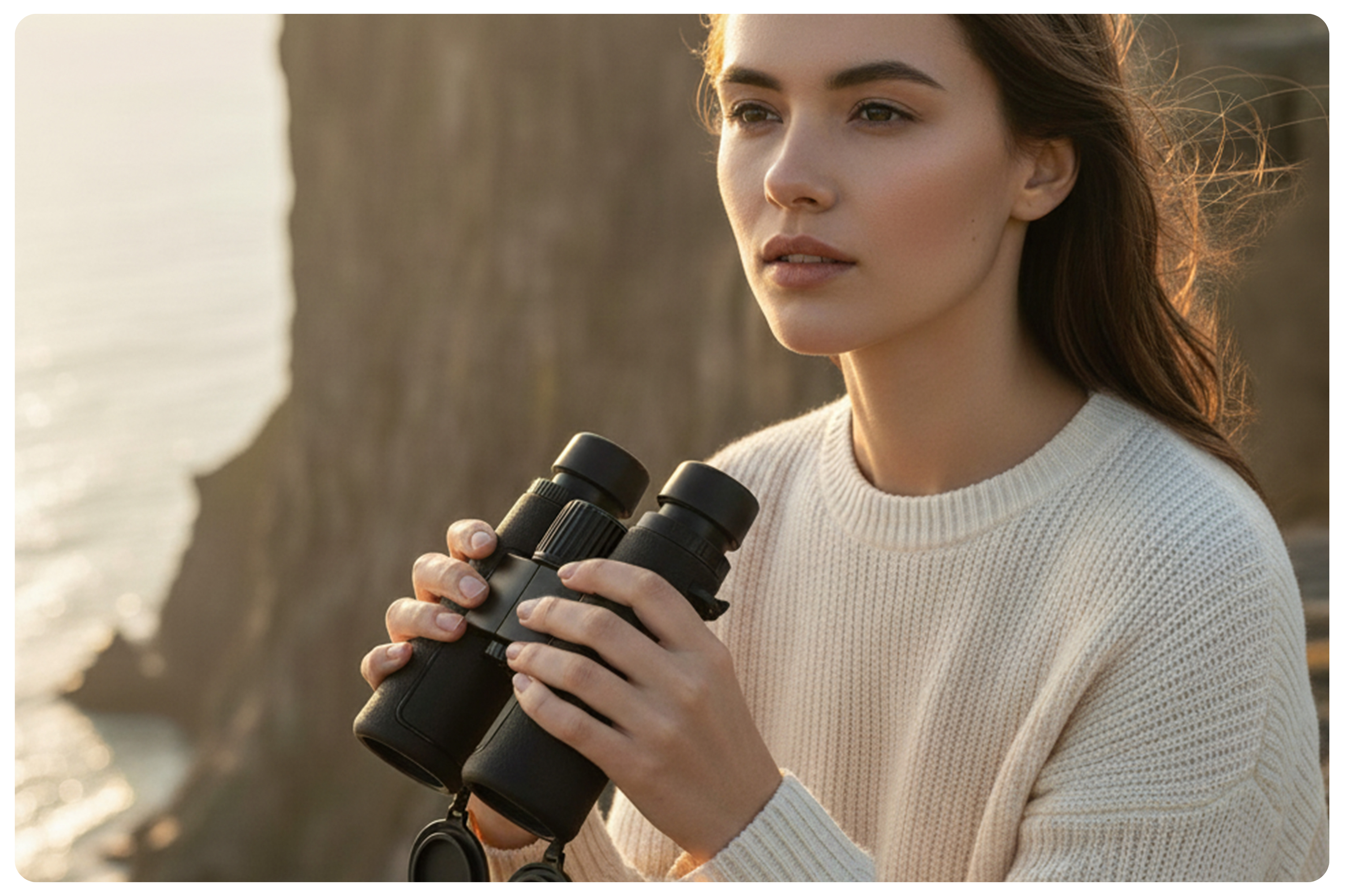 Using binoculars is truly effortless—a process so simple yet transformative. It begins with your eyes finding the target, a natural scan of the landscape or horizon. Once your eyes lock on to something interesting, the binoculars come into play. With a steady hand, you raise them to your eyes, and that’s where the magic happens. A gentle twist of focus is all it takes to bring your subject to life. Suddenly, what was once distant and blurry becomes crisp, vivid, and full of detail.